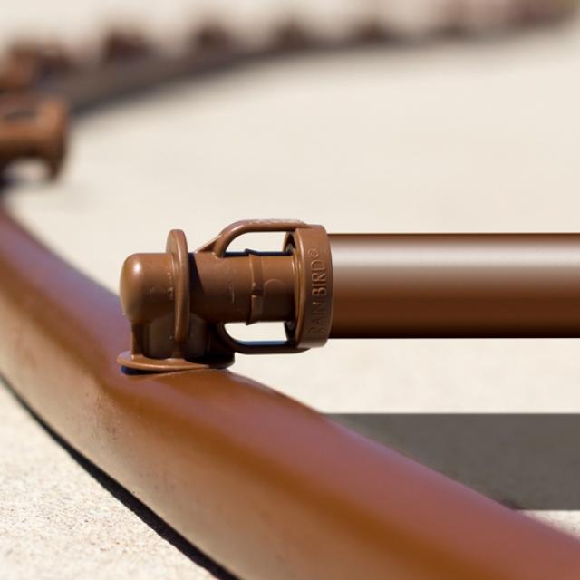 Using a proprietary blend of polyethylene similar to Rain Bird’s XF Series Dripline, the QF Dripline header allows installers to simply roll out the main line and attach the dripline at guaranteed 30 cm or 45 cm spacing. Eliminating the need for measuring, cutting, gluing and taping, the QF Dripline Header saves time and money, making projects more profitable. The QF Dripline Header barbs rotate 360º and incorporate a protective ring that surrounds the barb – preventing damage and ensuring a proper seal. The ring also provides leverage to make attaching the dripline easier. The rotating barb also manages trenching misalignment. Move left or right to accommodate the dripline – no need to re-trench. Barbs utilize the same design as Rain Bird’s popular XFF Fitting and require 50% less insertion force than competitive products. It also accommodates the XFF Fittings Tool. Using the same reliable self-dispensing coil as other XF Series Dripline tubing, the QF Header lays straight when uncoiled and is easy to install around non-linear landscape features. It bends to a 15” radius without becoming damaged or bent.