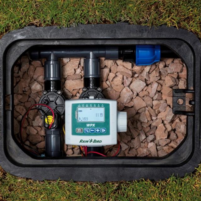 Designed to be resistant to wet and dusty conditions, it can be set up in the most difficult environments, particularly in valve boxes. Its large LCD screen simultaneously displays all the programming information required for each zone, making it even easier to use. There are several programming options available, including many hidden functions reserved for the installers. The WPX programmers are also battery-operated. They can operate for a whole year with only one 9-volt battery or for more than two years with 2 two-volt batteries.